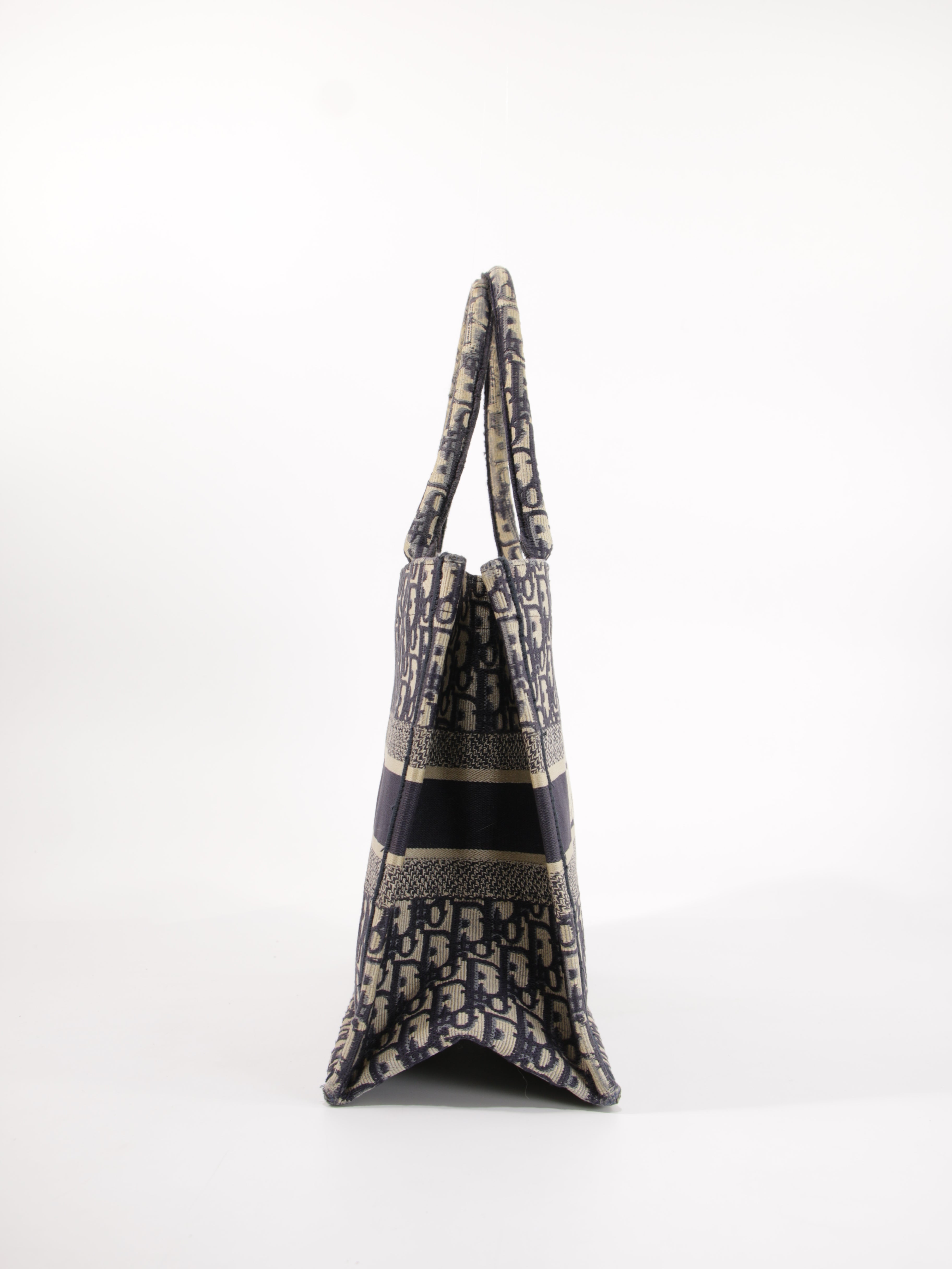Brand: Christian Dior | Style: Christian Dior - Book Tote | Type: Tote Bag | Color: Blue | Material: Canvas | Macbook friendly: Yes | Height: 27 cm. Length: 36 cm. Width: 16 cm. | Condition: Very Good | SKU: 29244 The bag has corner wear and handle wear.