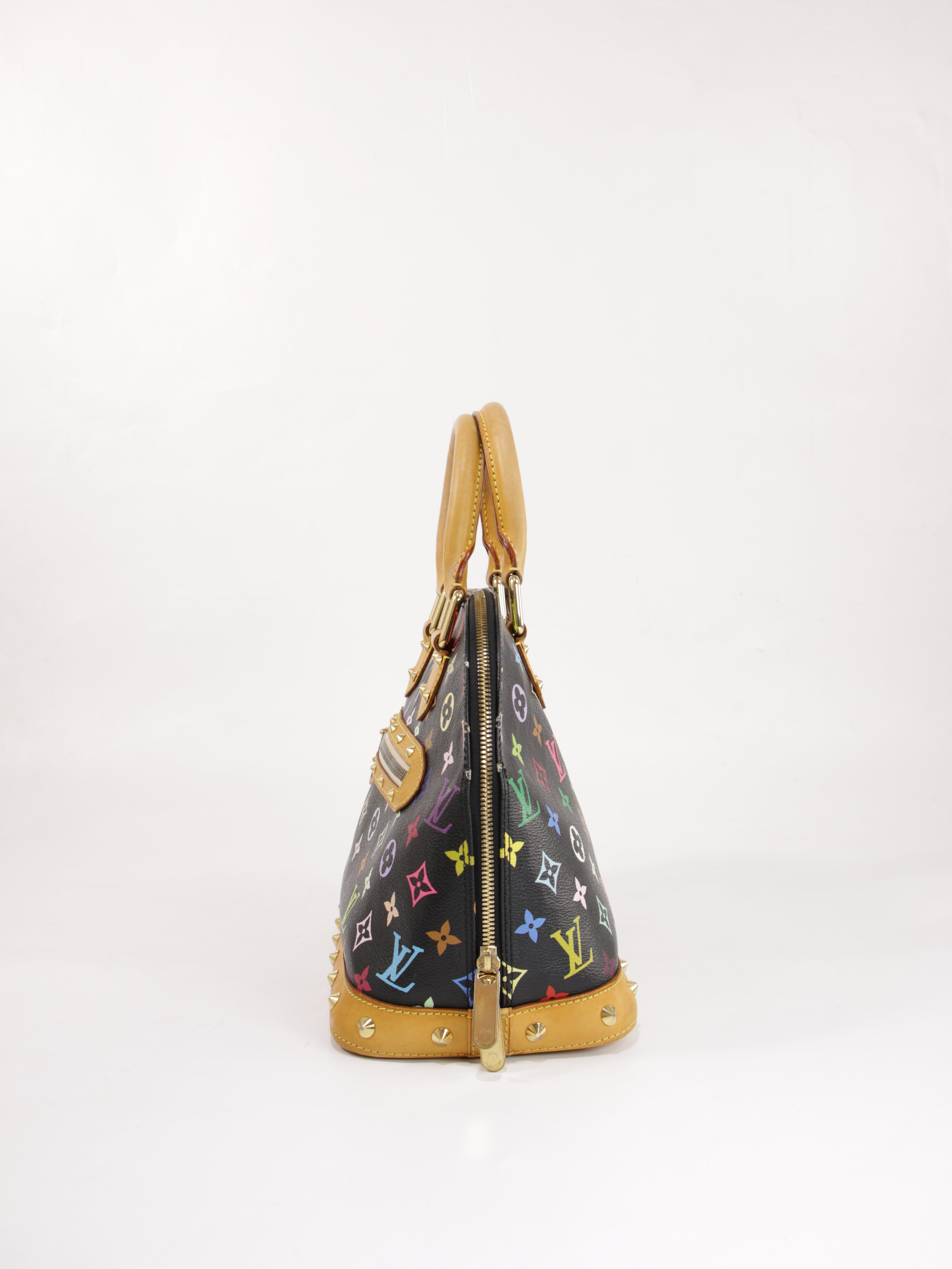 Brand: Louis vuitton | Style: Takashi Murakami Alma PM | Type: Hand Bag | Color: Black | Material: Canvas | Macbook friendly: No | Height: 25 Length: 32 Width: 16 | Condition: Very Good | SKU: 23960 The bag has some slight corner wear.