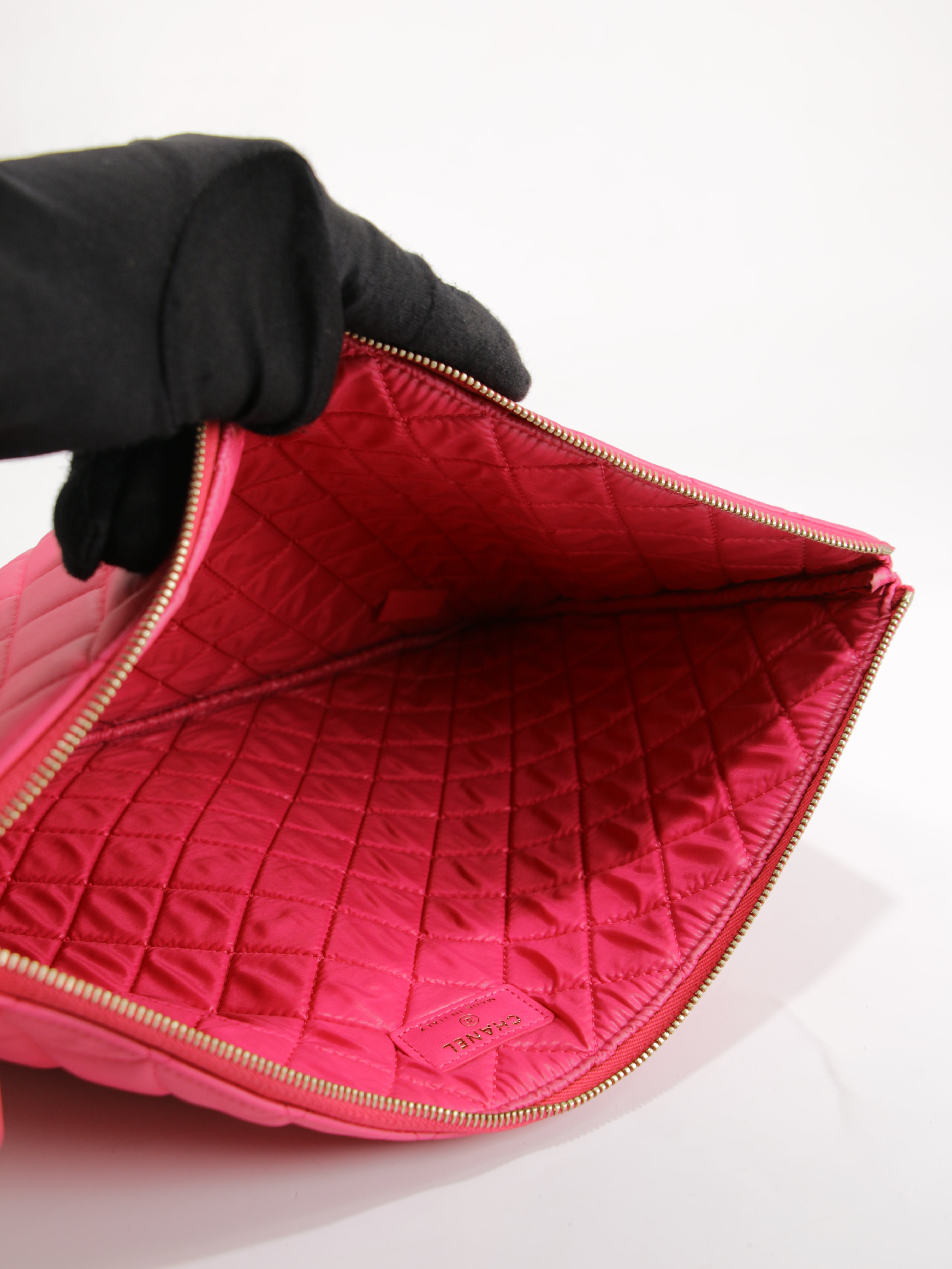 Brand: Chanel | Style: | Type: Clutch | Color: Pink | Material: Leather | Macbook friendly: Yes | Height: 24 cm. Length: 35 cm. Width: 10 cm. | Condition: Good | SKU: 24758