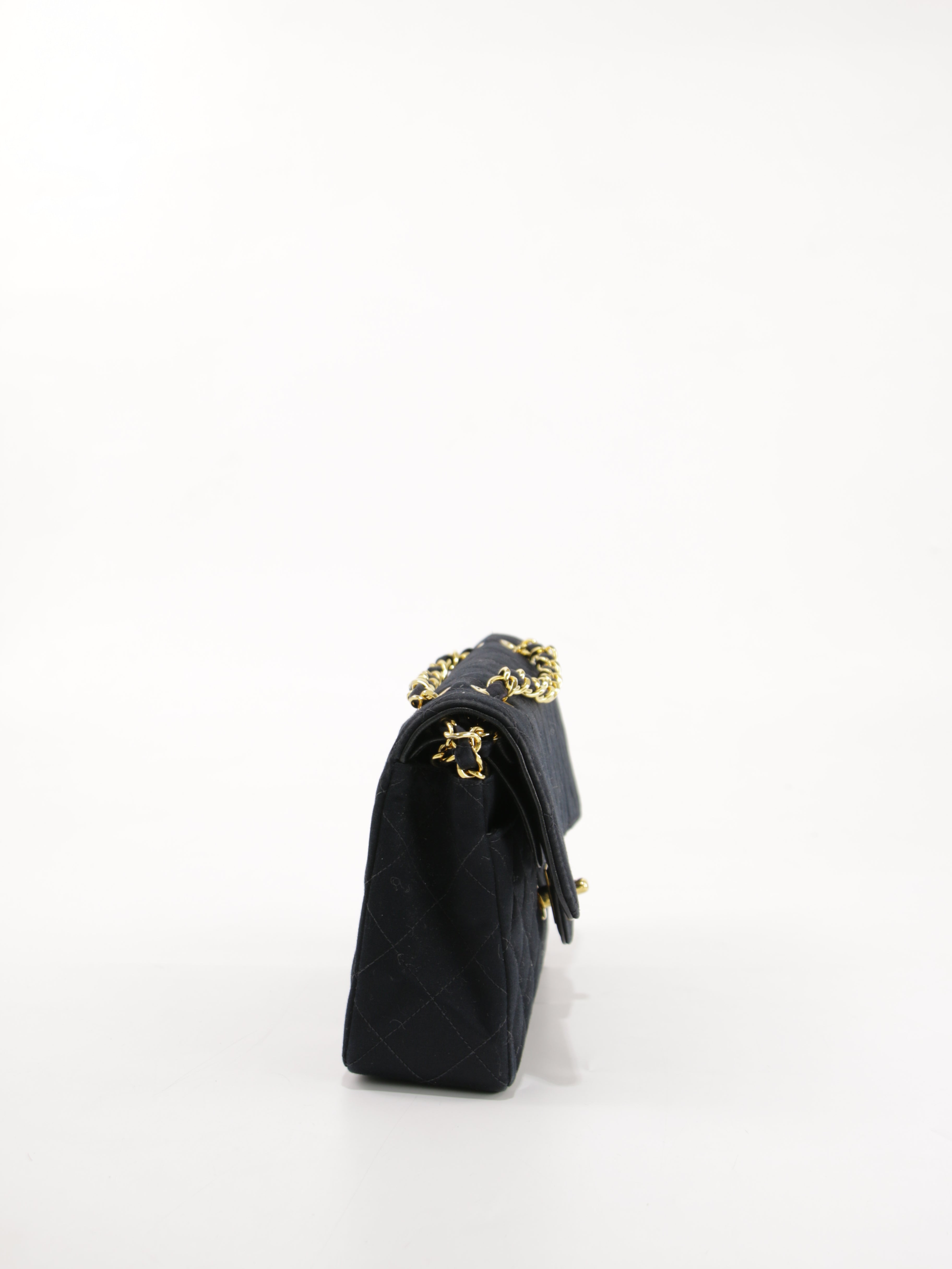 Brand: Chanel | Style: Chanel - Flap | Type: Shoulder Bag | Color: Black | Material: Satin | Macbook friendly: No | Height: 14 cm. Length: 23 cm. Width: 6 cm. | Condition: Very Good | SKU: 25830