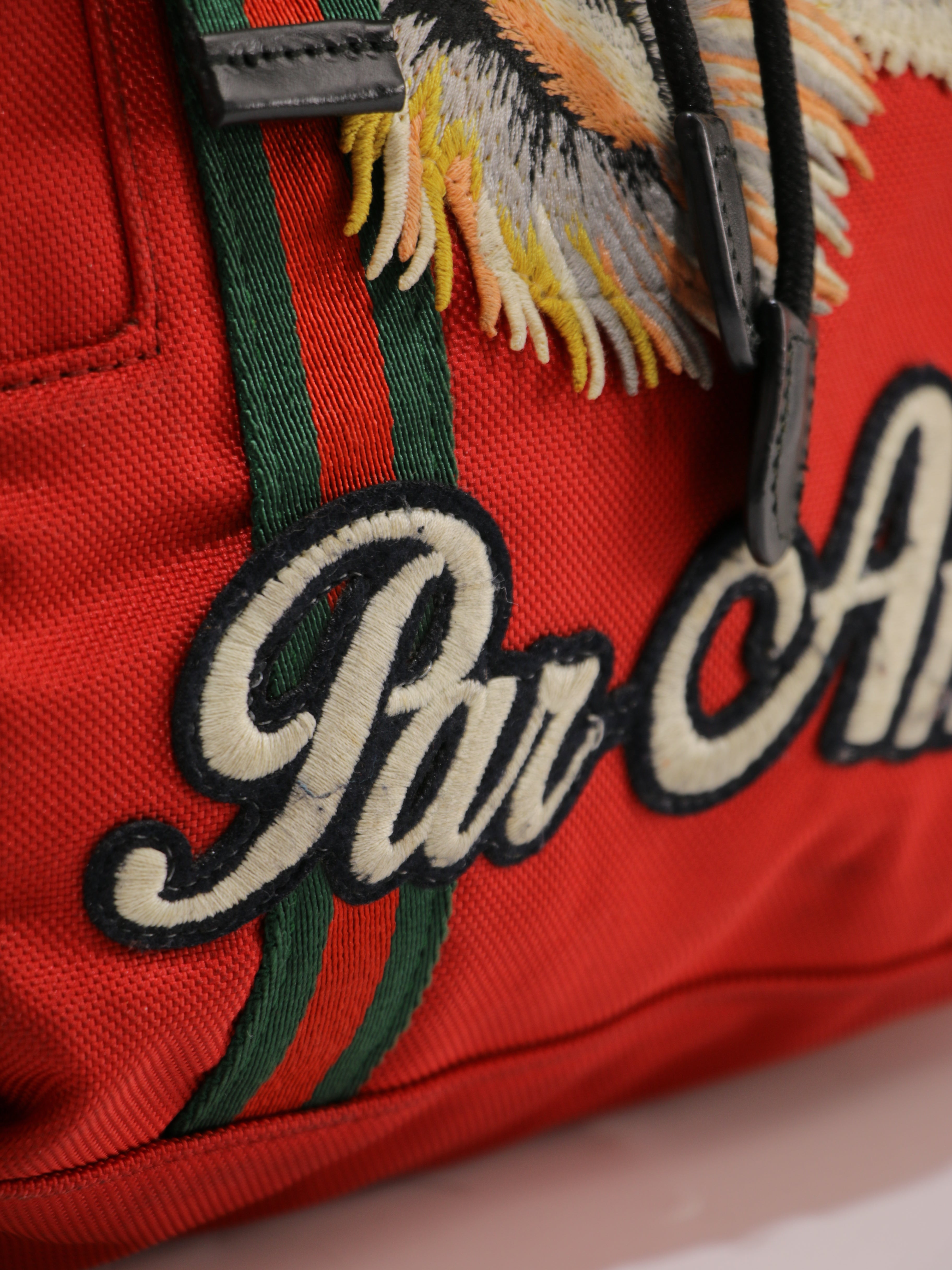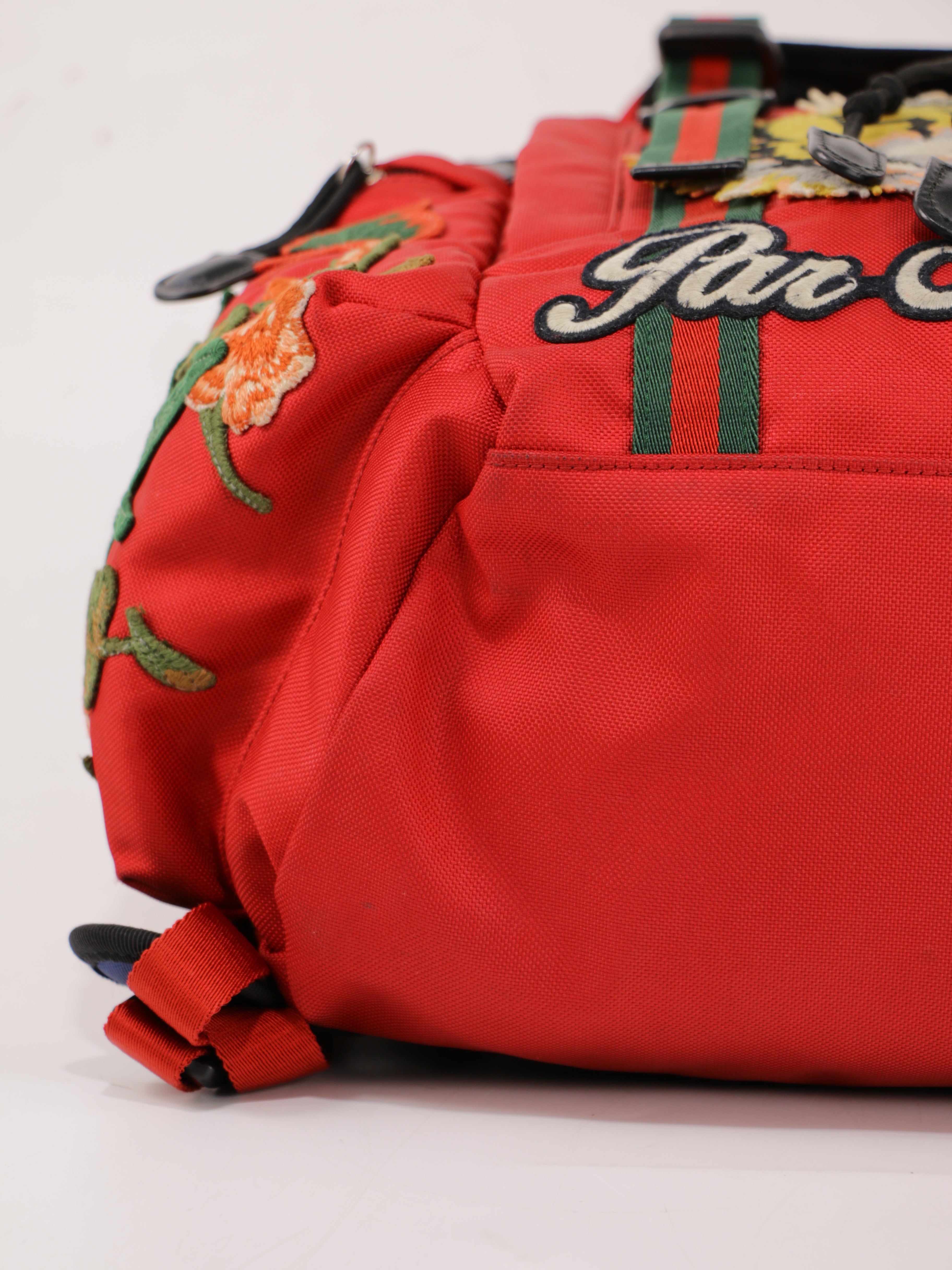 Brand: Gucci | Style: | Type: Backpack | Color: Red | Material: Canvas | Macbook friendly: Yes | Height: 40 Length: 34 Width: 16 | Condition: Very Good | SKU: 22476 This bag has a slight odour.