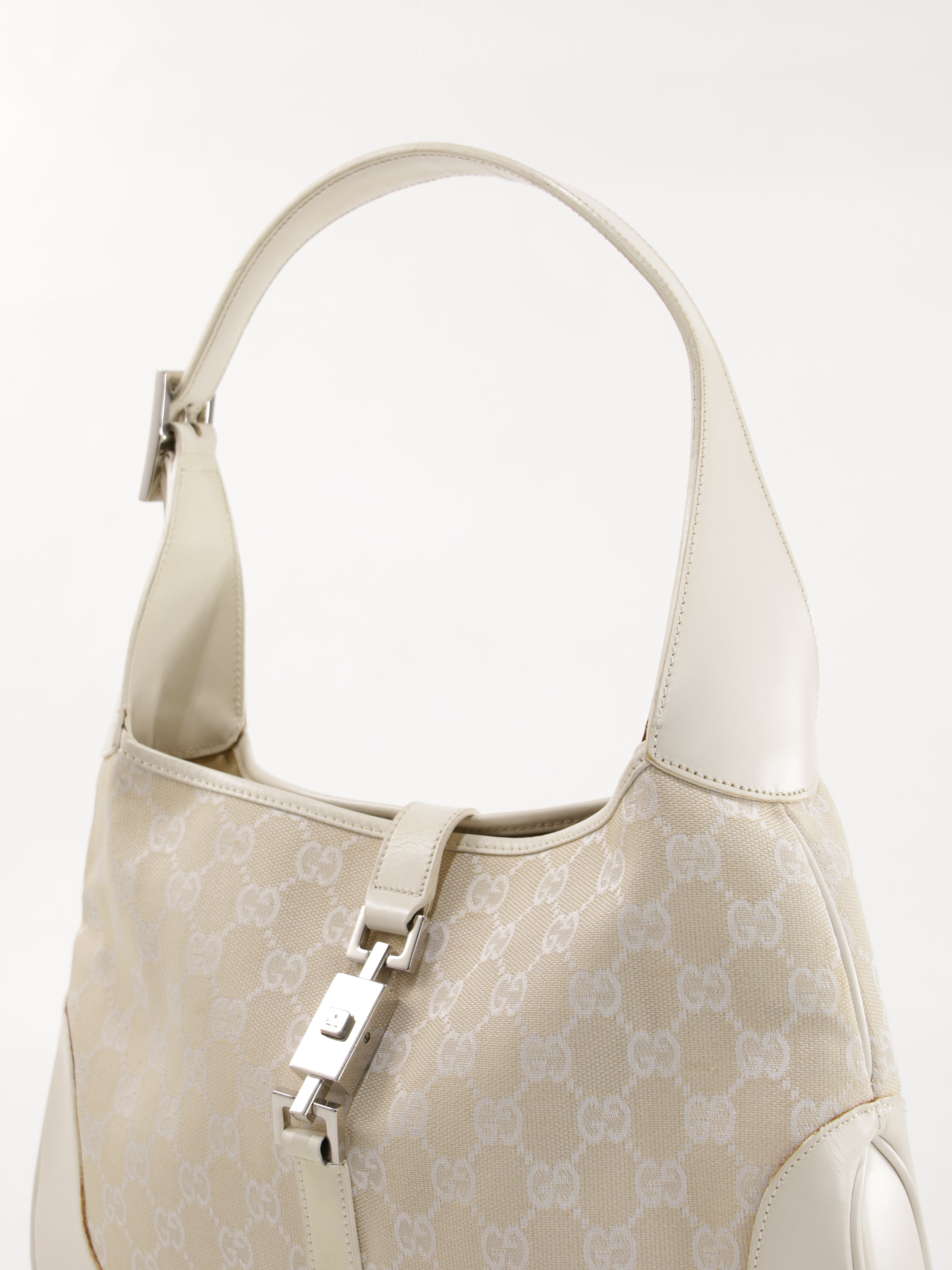 Brand: Gucci | Style: Gucci - Jackie | Type: Hand Bag | Color: White | Material: Canvas | Macbook friendly: No | Height: 19 cm. Length: 27 cm. Width: 3 cm. | Condition: Good | SKU: 25989